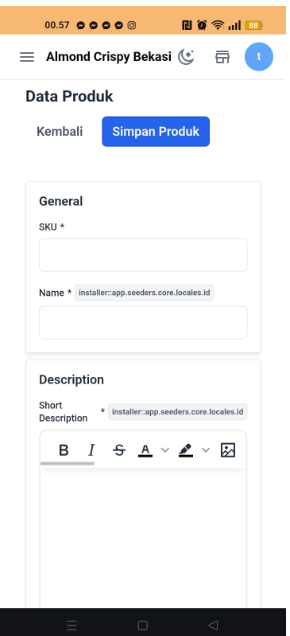 tampilan form tambah produk seperti berikut